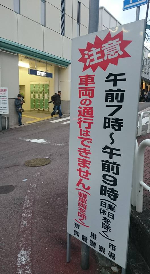 ここは僕が朝、駅立ちをしていることが多いところです。その際、いつも感じていたのが通行止めとされていながらも進入する車が相当多いということ。中には、かなりのスピードを出して通行する車も。